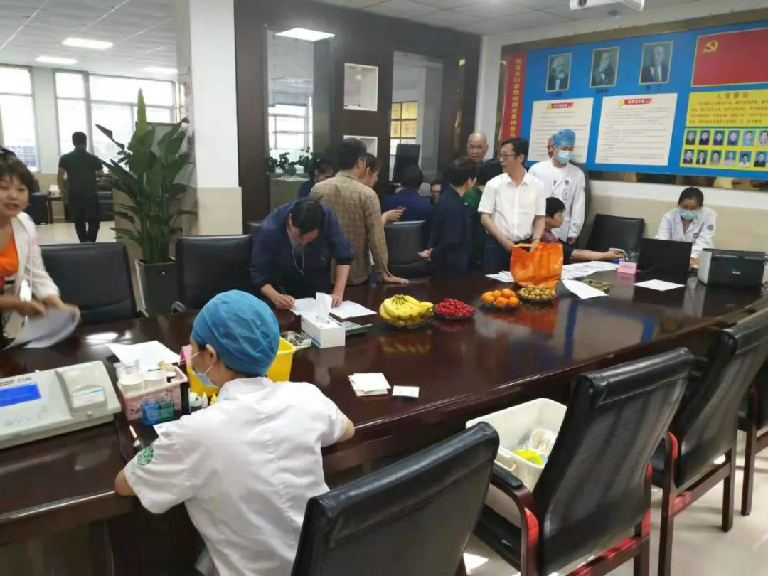 사진은 회사의 자발적인 헌혈 직원들이 무료로 헌혈하는 모습이다.